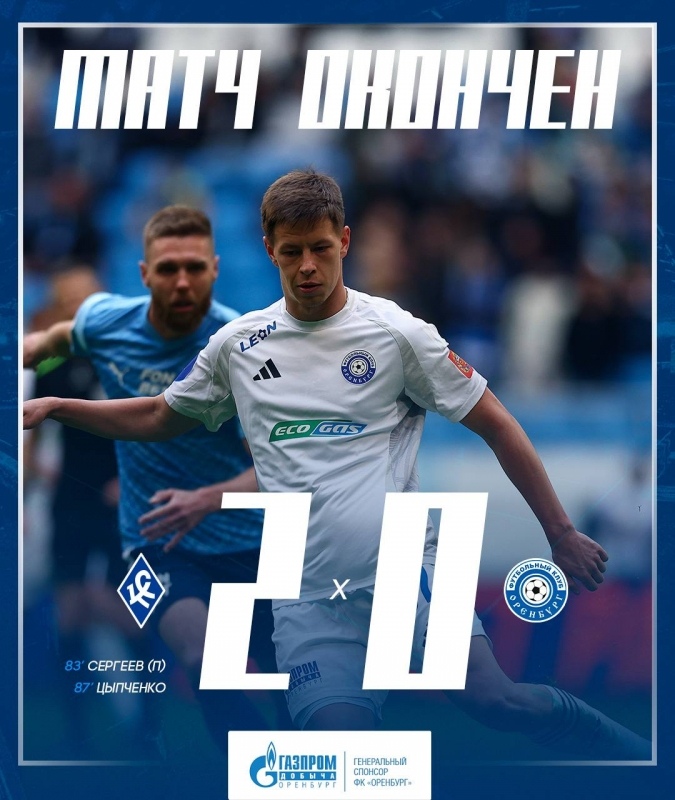 В рамках 26-го тура Российской Премьер-Лиги (РПЛ) на стадионе "Солидарность Арена" в Самаре состоялся матч между местными "Крыльями Советов" и командой "Оренбург". Встреча завершилась победой хозяев поля со счетом 2:0.