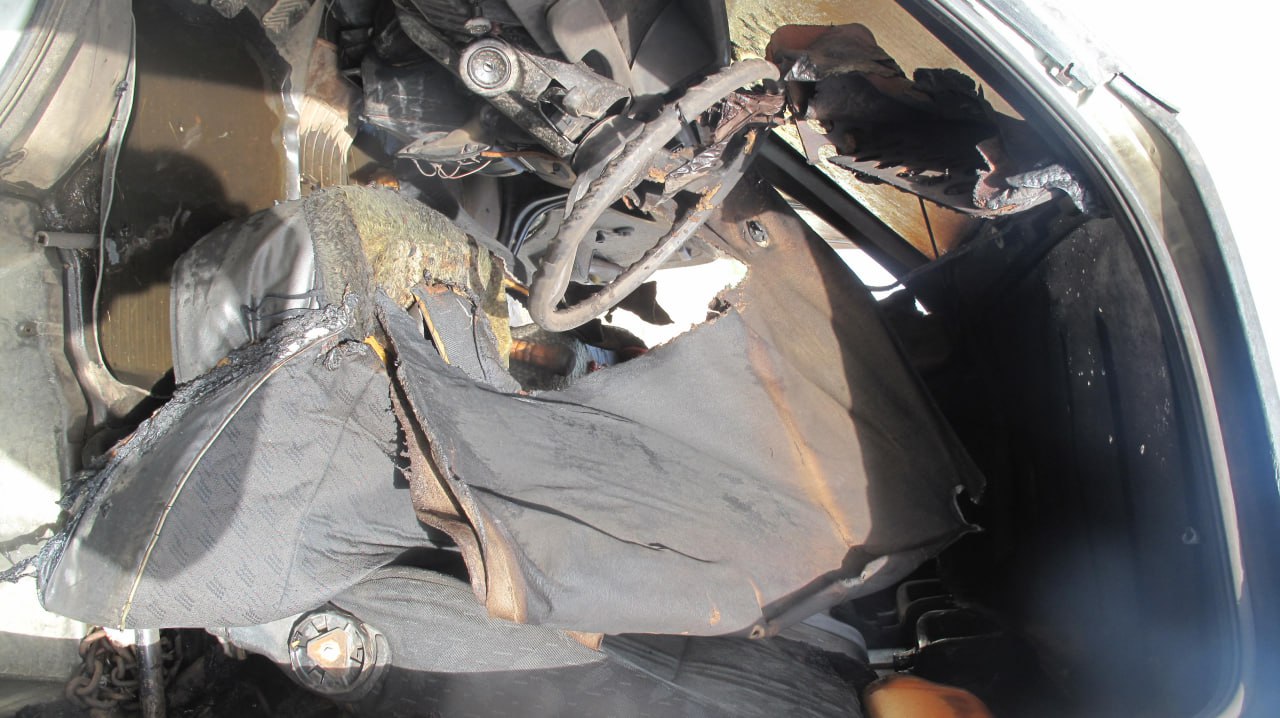 По словам владельца, несмотря на запертые двери, огонь проник в салон через заднее окно. В результате пожара были повреждены внутренняя отделка салона, сиденья, пластиковый бензобак и две покрышки с камерами.