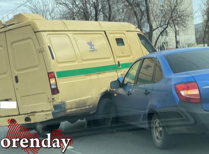 Сегодня в первой половине дня в Оренбурге случилось дорожно-транспортное происшествие. На проспекте Дзержинского дорогу не поделили инкассаторский фургон и «Лада Гранта».