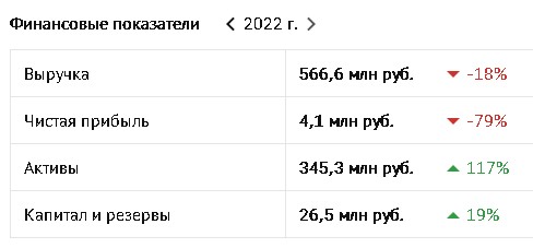 Согласно открытым данным, последний раз фирма выигрывала тендер на «Госзакупках» в 2018 году. В 2022 году у неё снизилась и выручка (на 18 процентов, до 566,6 млн. рублей) и чистая прибыль (на 79 процентов, до 4,1 млн. рублей).