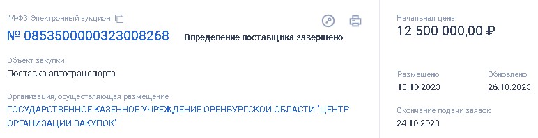 13 октября ГКУ «Автобаза аппарата губернатора и правительства Оренбургской области» разместила на «Госзакупках» тендер на поставку пяти легковых автомобилей. На это чиновники готовы были потратить 12,5 млн. рублей.