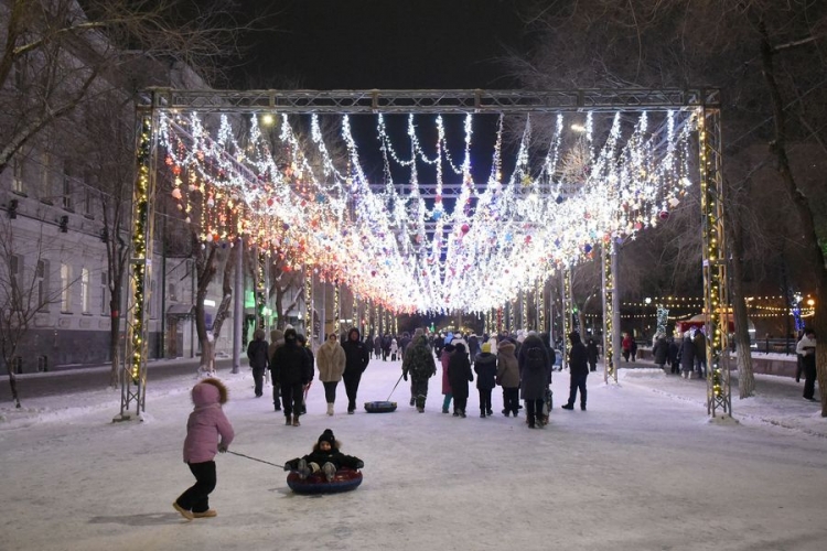 Накануне на площади им. Ленина состоялось открытие главной городской елки Оренбурга. 25-метровая красавица засияла праздничными огнями под дружное исполнение оренбуржцами песни "В лесу родилась елочка" и по команде Деда Мороза "Раз, два, три, елочка, гори!".