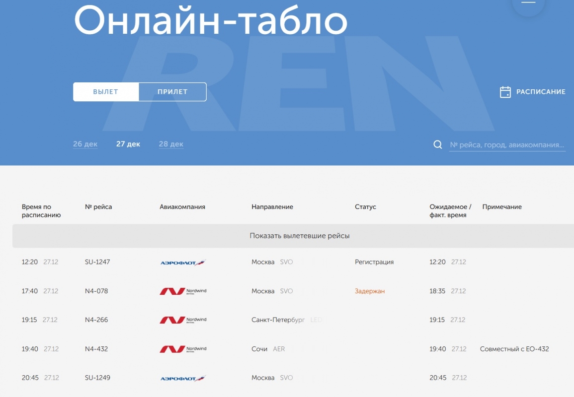 Оренбурге снова перенесен вылет самолета в столицу. Борт авиакомпании Nordwind покинет Оренбург не в 17.40, а в 18.35.