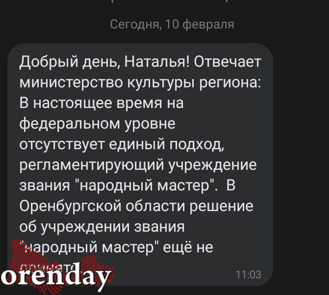 Несмотря на то, что звание «Народный мастер» не входит в систему государственных наград Российской Федерации и присвоение такого звания никак не регламентируется на федеральном уровне, эта тема волнует многих ремесленников, в том числе, из Оренбургской области.