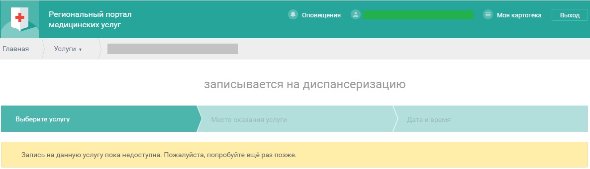 - записаться на диспансеризацию, поскольку такая услуга недоступна;
