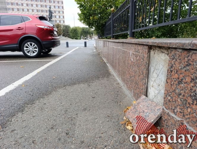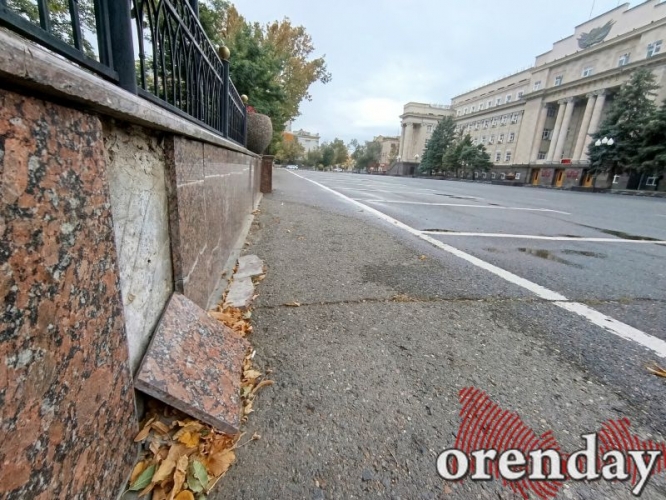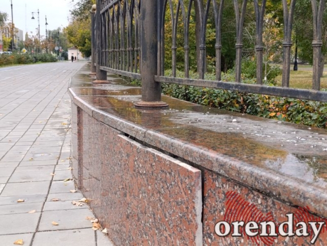 Все это, вкупе с проржавевшим металлом, массивными фонарными столбами из прошлого столетия, вымазанными в черный цвет, и хулиганскими надписями, не может не вызывать вопросов к ответственным за содержание исторически значимого и знакового места у резиденции Губернатора Оренбургской области.