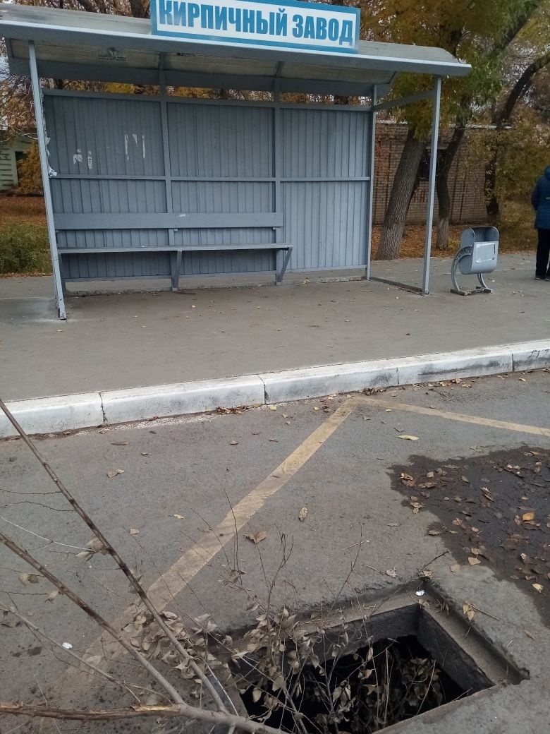 Открытую ливнёвку можно увидеть и на остановке «Кирпичный завод №1». Горожане жалуются, что автобус из-за этого не может подъехать близко к остановке, а пассажиры из-за спешки могут переломать ноги выходя из транспортного средства или же направляясь к нему.
