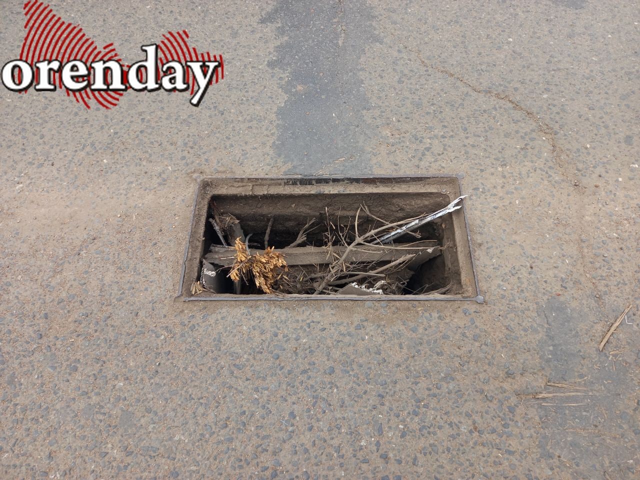 Подойдя к открытой ливнёвке ближе, мы увидели там сухие ветки, железки. Вероятно, "пропасть" сами водители пытались забить всякой всячиной. Глядишь, доведут эту затею неравнодушные люди до конца и не видно будет её на проезжей части.