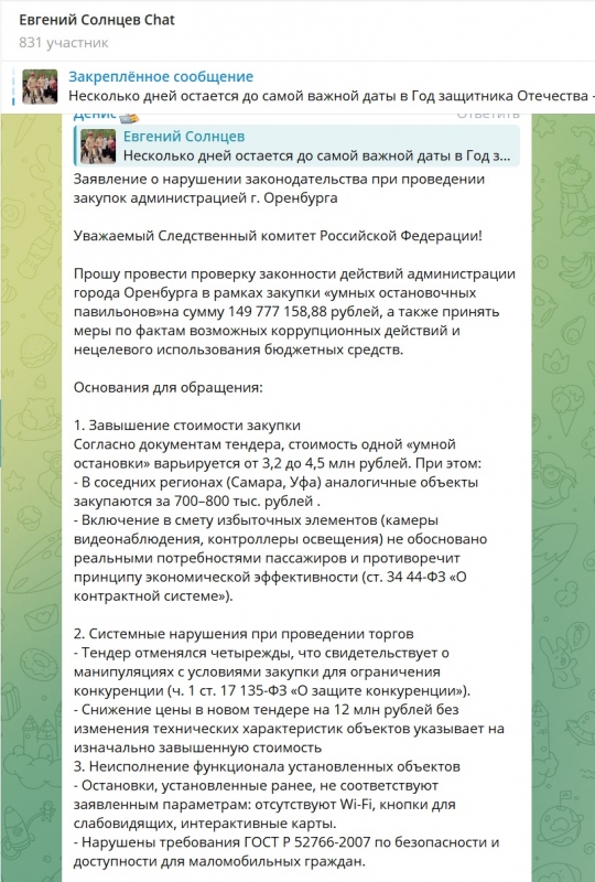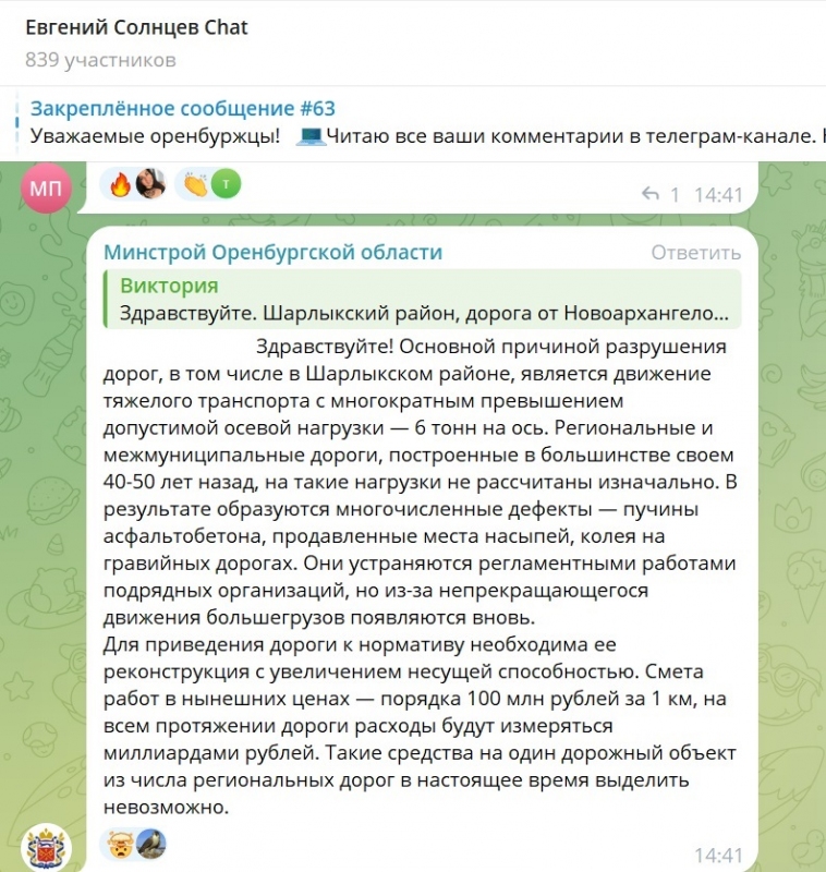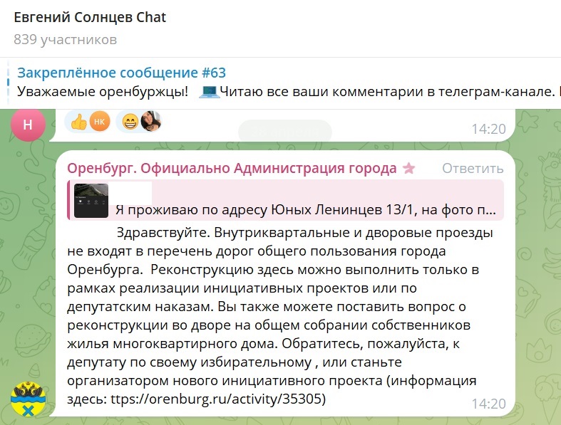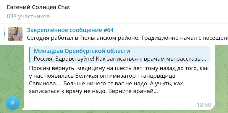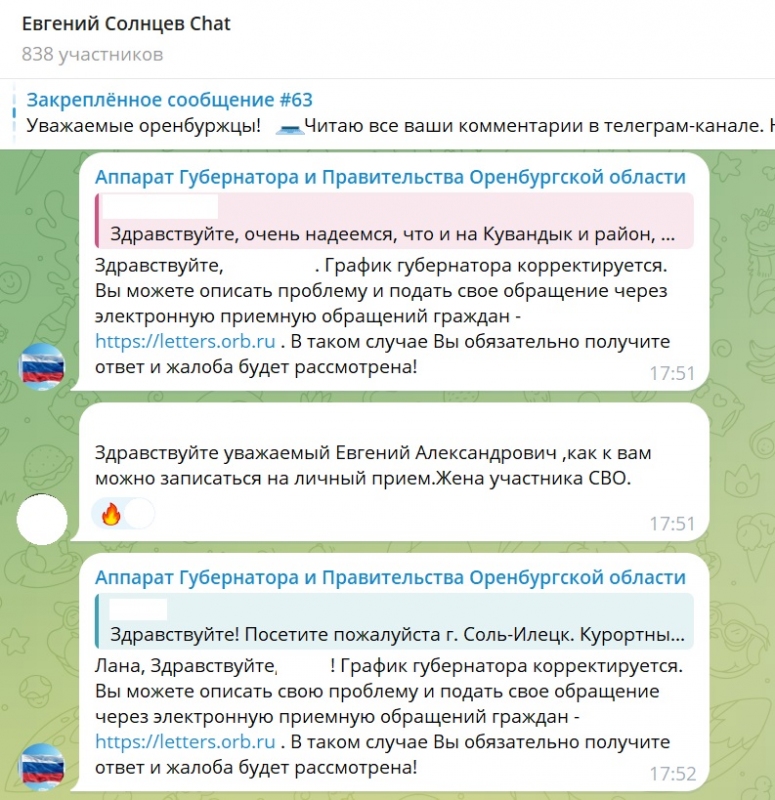 Врио губернатора Оренбургской области Евгению Солнцеву через Telegram ежедневно поступают сотни обращений.