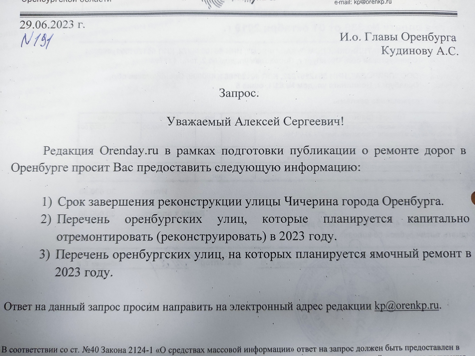 Впрочем, асфальтоукладчики, похоже, исчезли не только с улицы Чичерина: в отличие от прошлых сезонов, нынешним летом увидеть ремонтную технику на дорогах в Оренбурге не так-то просто. Редакция «Орендэй» обратилась к Алексею Кудинову, который исполняет обязанности ушедшего в отпуск Главы Оренбурга, с запросом о сроках окончания ремонтных работ на улице Чичерина.
