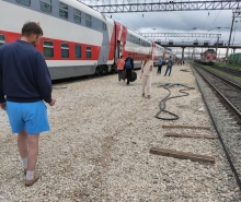 Под ногами пассажиров, торопящихся на поезда, и провожающих – щебенка. Передвигаться по ней с чемоданами очень сложно, колёсики не выдерживают такое испытание.