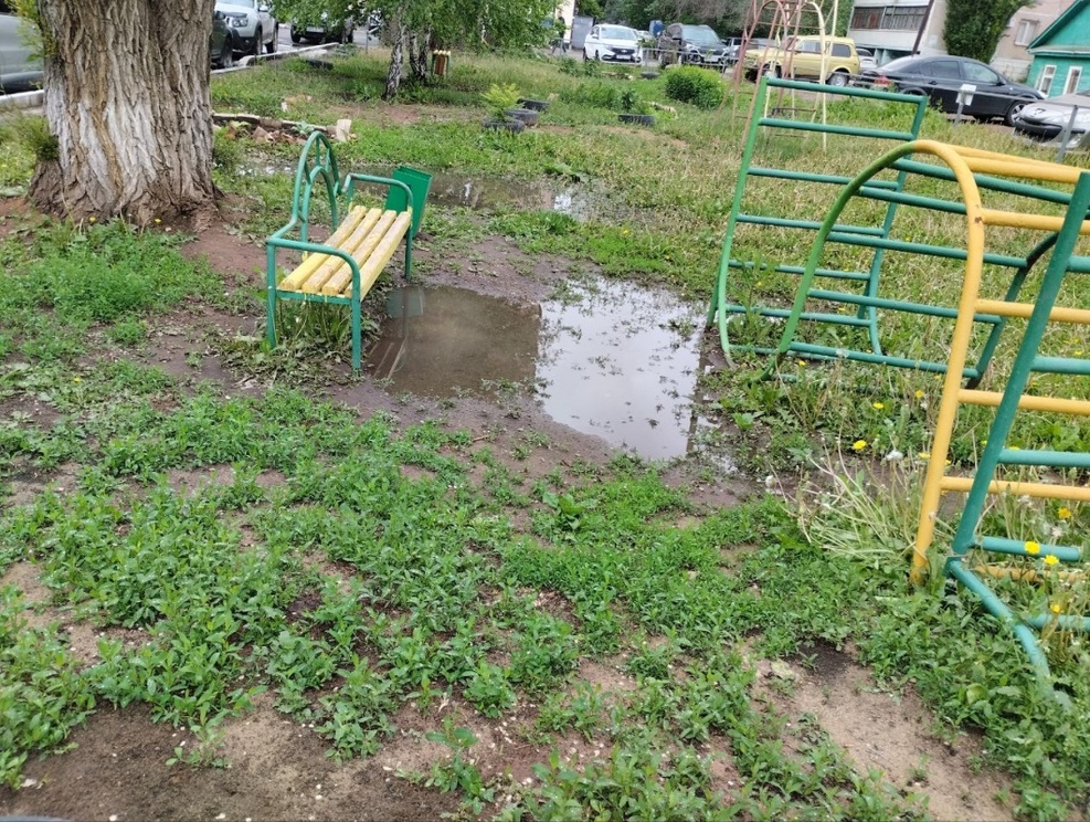 Тем более, пользоваться площадкой дети могут лишь в сухую погоду – после дождей и площадка, и подходы к ней затоплены.