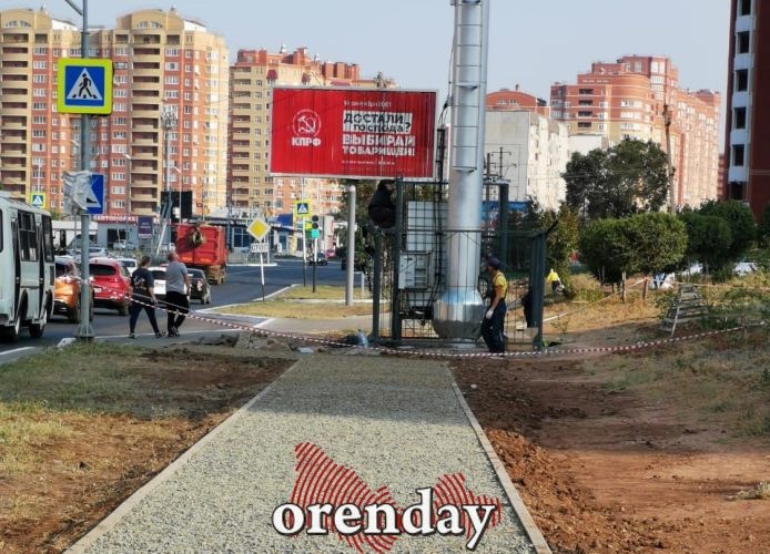 На улице Салмышской в этом году обустраивают новые тротуары, и пешеходы, проходящие мимо боулинг-центра "Рина" негодуют, как так несогласовано у нас могут возводить что угодно и где угодно. Тротуар традиционно пролегает параллельно проезжей части, но здесь его планы нарушили те, кто обеспечивает оренбуржцев качественной сотовой связью.