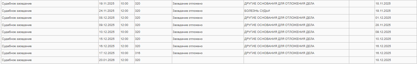 Последнее в 2025 году заседание в суде прошло 17 декабря, и теперь участники процесса встретятся лишь 20 января 2026 года.