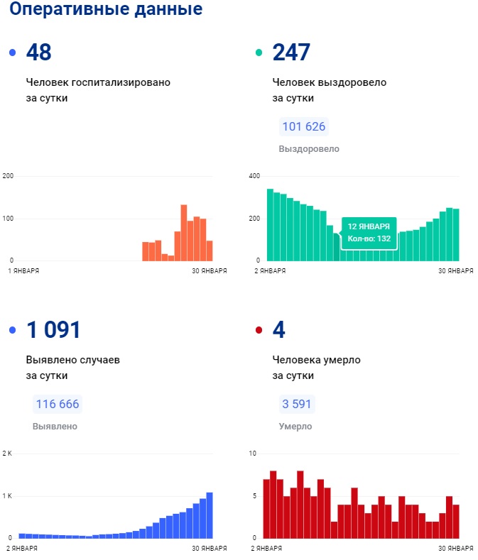 По данным на 30 января в суточная заболеваемость в регионе составила 1 091 случай. Общее количество заболевших выросло до 116 666. Прирост заболеваемости рекордный за всё время пандемии - 15,4%.