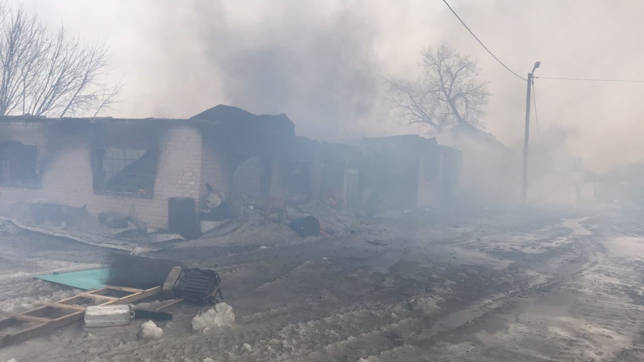 На пожар выдвинулись расчеты трех пожарно-спасательных частей, службы пожаротушения и специализированной пожарно-спасательной части. По приезду оказалось, что огнем охвачена вся площадь объекта - 500 квадратных метров, а также обрушилась кровля.