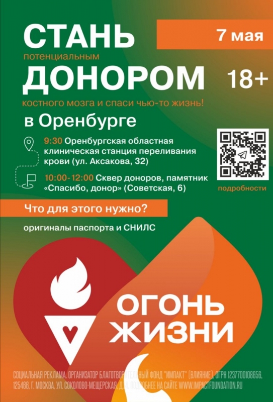 В Оренбурге старт Эстафете будет дан в 9.30 возле Оренбургской областной клинической станции переливания крови. К 10.00 факел доставят в Сквер доноров к памятнику «Спасибо, донор».