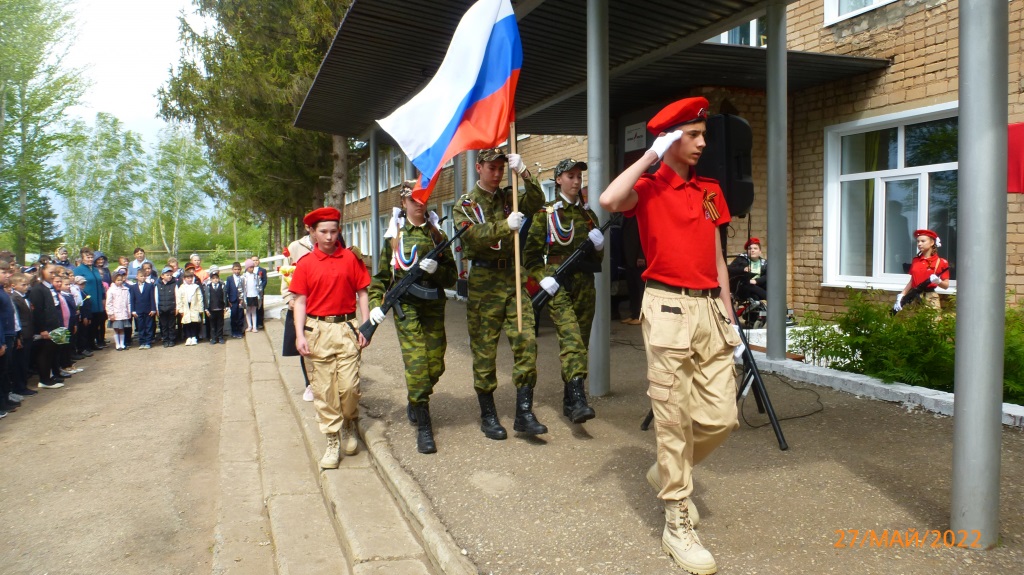 Высеченный в камне портрет с именем Героя установили на здании Чкаловской средней общеобразовательной школы, в которой обучался наш земляк. Школьники из юнармейского отряда организовали у мемориала почетный караул.