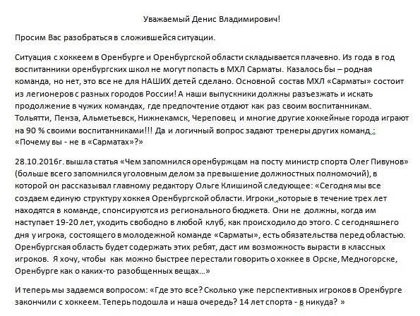 Родителей терзают вопросы: «Сколько уже перспективных игроков в Оренбурге вынуждены бросить хоккей? 14 лет спорта – в никуда?».