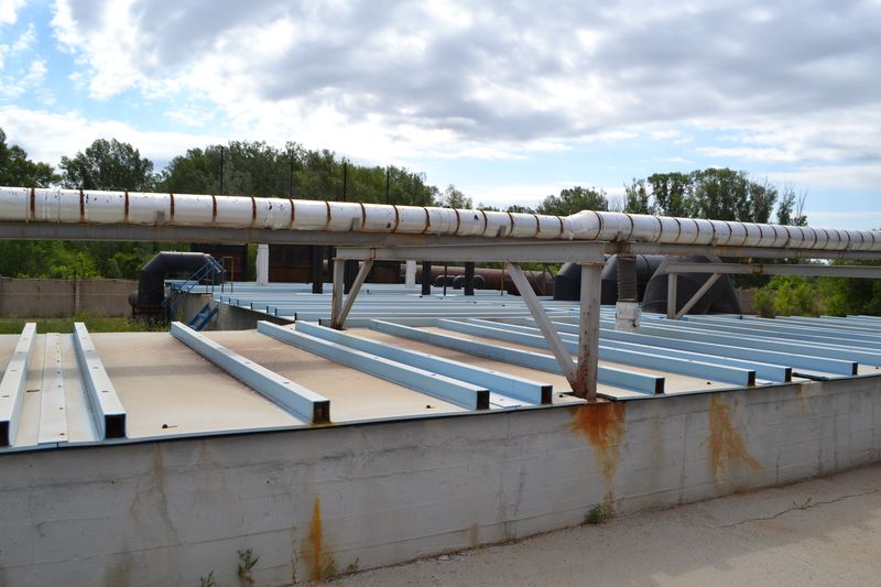 На очистных сооружениях сточные воды сначала попадают в приемную камеру, которую уже несколько лет как закрыли плотными металлическими листами, чтобы «запечатать» все неприятные запахи. После вода оказывается в западне решеток, откуда проходит в песколовки.