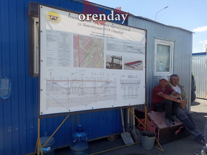 Мы в очередной раз заглянули на объект. Проезжая часть уже готова, осталось доделать ограждения и техполосы. Работяги компании «Оренбургавтодор» сидели без дела у вагончика, объяснив, что у них обед. С их слов, им указано, что сдать объект необходимо к 20 июля. Вот и на паспорте объекта, который красовался здесь же на вагончике, дата сдачи объекта уже исправлена на июль 2022 года.