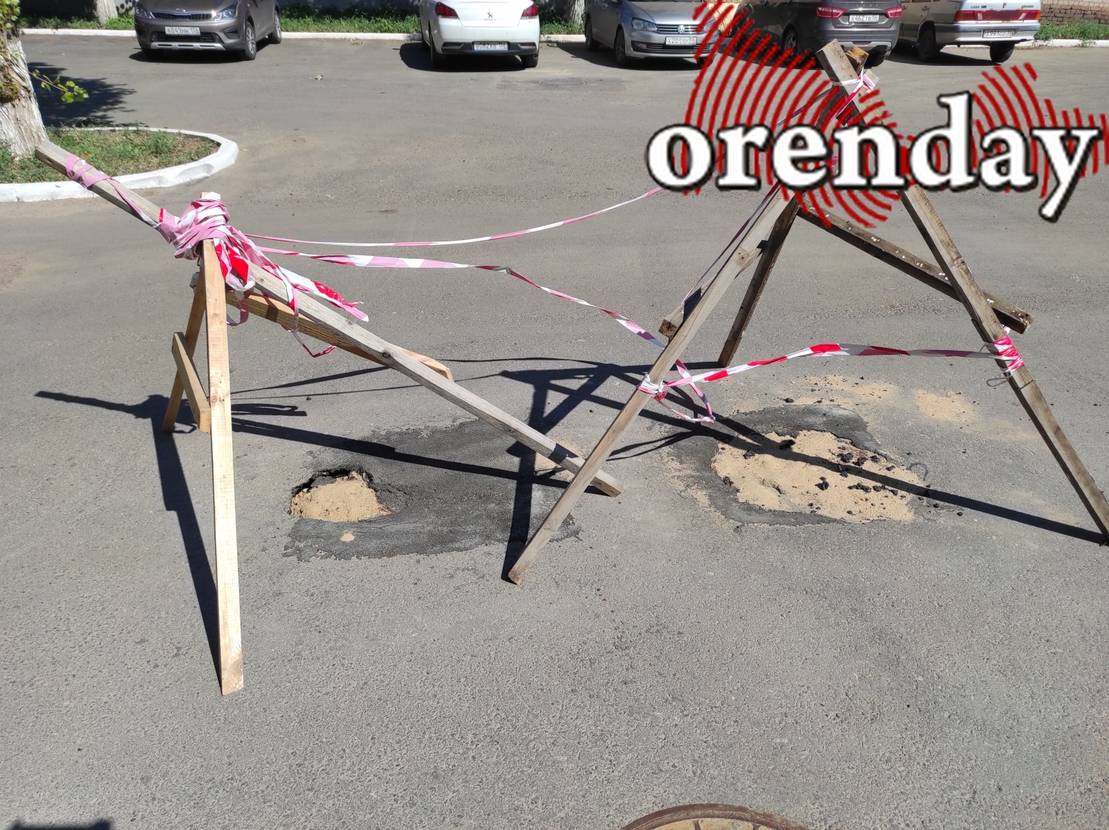 С левой стороны здания ремонтники продолжают зарабатывать на хлеб с маслом борьбой с хроническими провалами грунта: