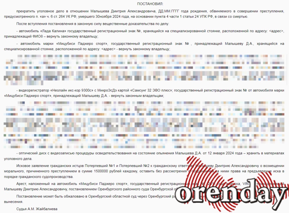 Как рассказывал Orenday, трагедия произошла 12 января на 59-м километре на трассы Оренбург - Илек.