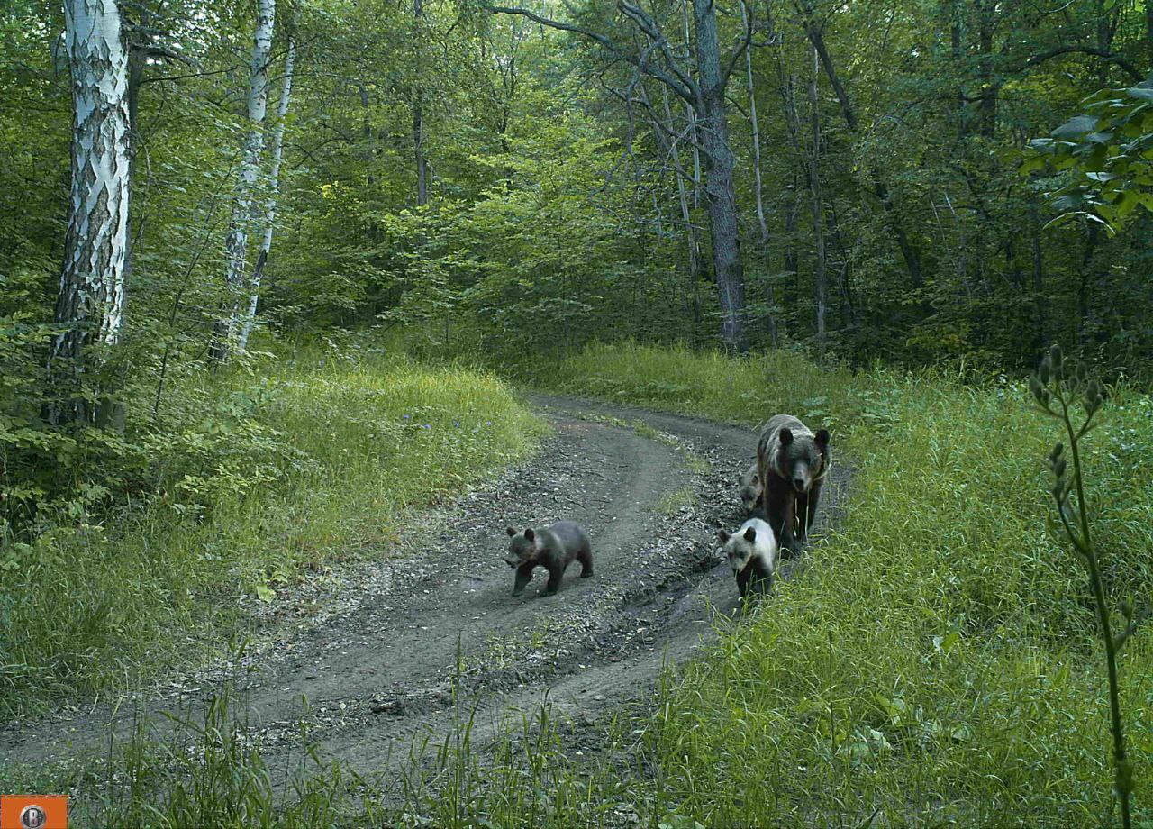 Одна из фотоловушек зафиксирована на одном из поворотов дороги в районе ущелья речки Малбуй. Здесь регулярно пробегают рыси, бурые медведи, бывает, что и с медвежатами, косули и волки.