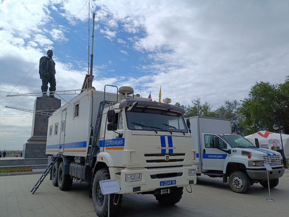На площади у памятника Чкалову полиция развернула выставку специальной техники и средств борьбы с преступностью, где сотрудники демонстрируют их возможности и отвечают на вопросы посетителей.