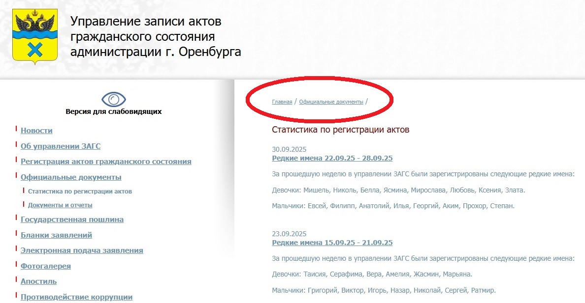 Примечательно, что название раздела на сайте Оренбургского ЗАГСа заботливые руки еще не успели поменять, и он по-прежнему выглядит так: «Официальные документы, статистика по регистрации актов». Но редкие имена – это все, что, по мнению чиновников, достаточно знать оренбуржцам о демографической ситуации в областном центре.