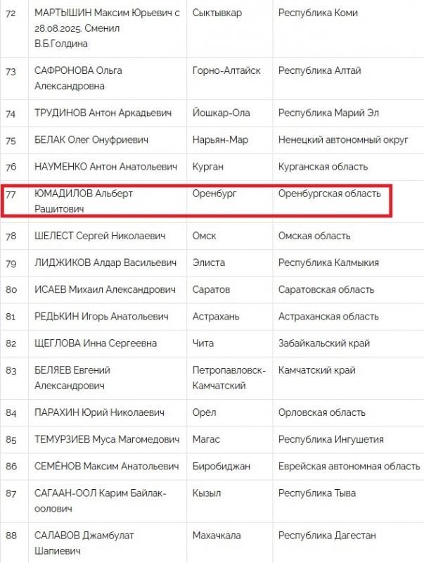 В настоящее время ниже врип главы Оренбурга лишь градоначальники Омска, Элисты, Саратова, Астрахани, Читы, Петропаловска-Камчатского, Орла, Магаса, Биробиджана, Кызыла и Махачкалы.