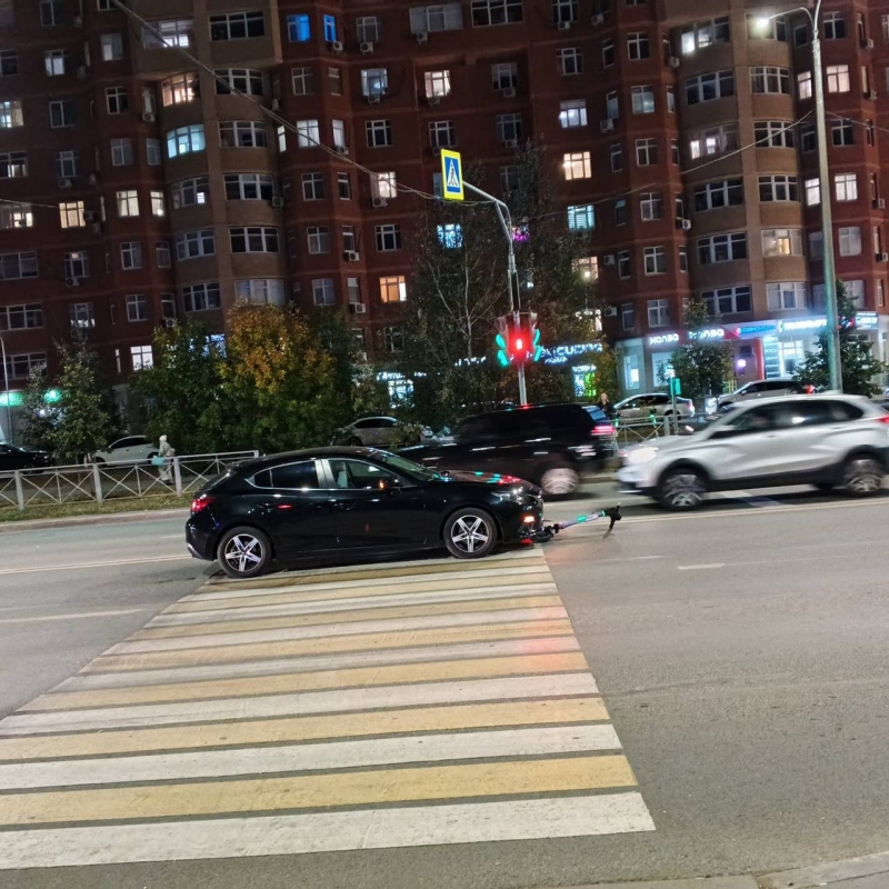 Предварительно установлено, что 37-летняя оренбурженка за рулем автомобиля Mazda сбила на регулируемом пешеходном переходе мужчину. Он мчатся по "зебре" на зелёный сигнал светофора на электросамокате.