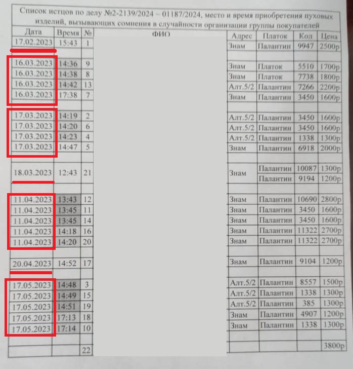 По мнению Галии Кимовны, конкуренты решили идти другим путём. Так, на предпринимателя поступил иск от 21 покупателя, оставшегося недовольным качеством товара. Торговые точки предпринимателя работают каждый день, ежедневно отпуская свои изделия. Но, по какой-то подозрительной случайности или не случайности, недовольными оказались те, кто закупался преимущественно в один день с февраля по май 2023 года.