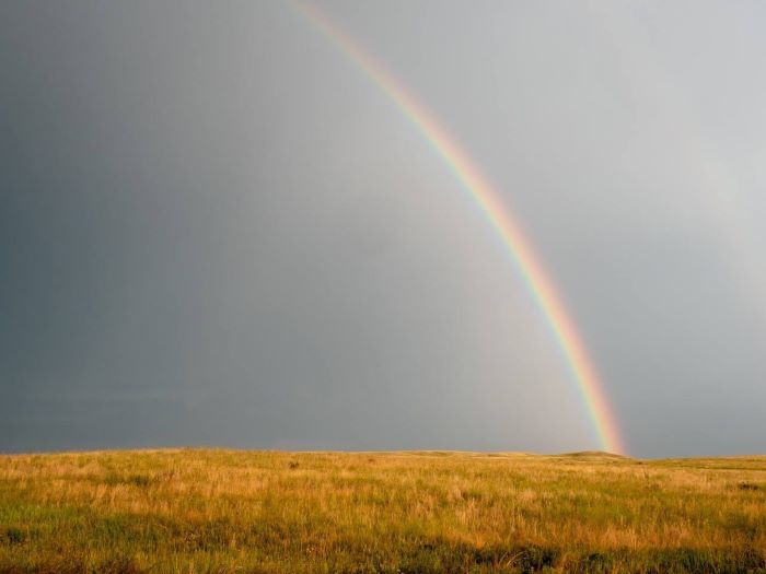 На место сразу была вызвана группа пожаротушения, а сотрудники уже стремительно мчали к разрастающемуся выжженному полю. Огонь полыхал, дым уходил в небеса огромными клубами, сильный ветер усугублял ситуацию, а на фоне всего этого сумасшествия сияла радуга.