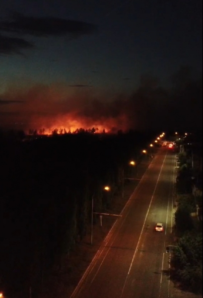 22:40 пожар удалось локализовать. Распространение пламени остановлено. Работы по тушению продолжаются. Площадь территории, на которой локализовали возгорание, составляет не менее 100 га.