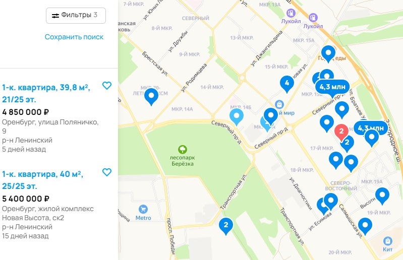 В популярном северо-восточном жилом массиве Оренбурга самая дорогая «однушка» выставлена за пять миллионов четыреста тысяч рублей на улице Поляничко (40 кв.м., 25/25 эт.). А шестьдесят шесть «квадратов» на улице Автомобилистов каким-то чудом не сдавшийся риэлторам прямой продавец готов передать будущим собственникам за пять миллионов двести тысяч.