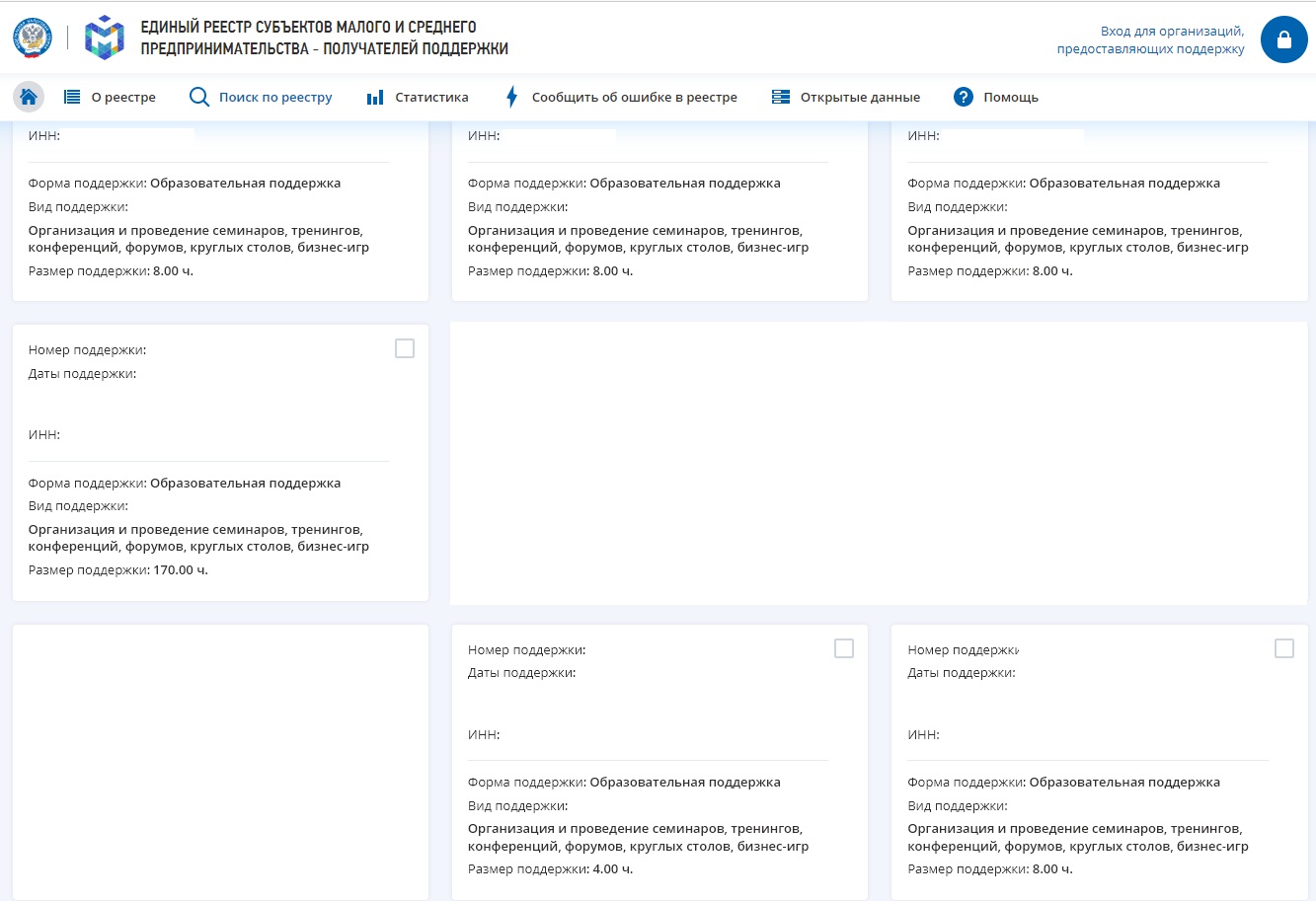 Так, ряд оренбургских предпринимателей, открыв сайт ФНС России, а именно Единый реестр субектов малого и среднего предпринимательства - получателей поддержки (rmsp-pp.nalog.ru) были обескуражены тем, что их активно обучали, хотя они об этом и не просили. У некоторых особо активных бизнесменов размер такой поддержки за год насчитывает до 300 часов. Отметим, что в образовательную поддержку входят такие услуги, как организация и проведение семинаров, тренингов, конференций, круглых столов, бизнес-игр, а также образовательные программы и форумы, то есть, забыть о посещении таких мероприятий весьма трудно, но, тем не менее, массовая амнезия напала на местных бизнесменов.