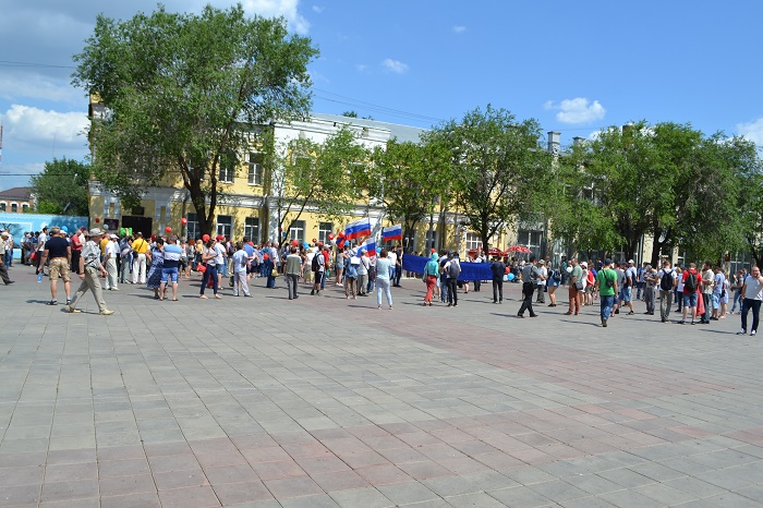 Люди шли на площадь «Атриум», невзирая на палящую жару и выходной день - достойно жить после выхода на пенсию хотят все. Люди среднего и пожилого возраста, молодежь едины во мнении: повышения пенсионного возраста допускать нельзя.