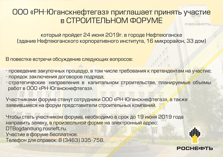 ООО "РН-Юганскнефтегаз" приглашает принять участие в СТРОИТЕЛЬНОМ ФОРУМЕ