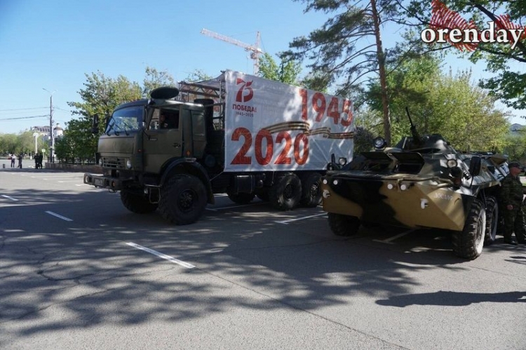В завершении колонна техники со Знаменем Победы проехала по улицам Оренбурга.