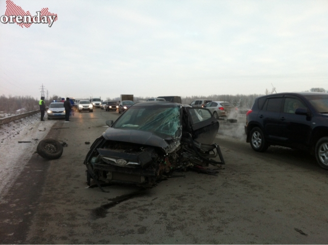 Как сообщают очевидцы, в ДТП попали не меньше восьми машин: их разбросало веером вдоль дороги. Здесь и "Митцубиши Аутлэндер", и пассажирская ГАЗель, Нива, "Хендай Солярис" и другие. На дороге лежат вырванные колеса.