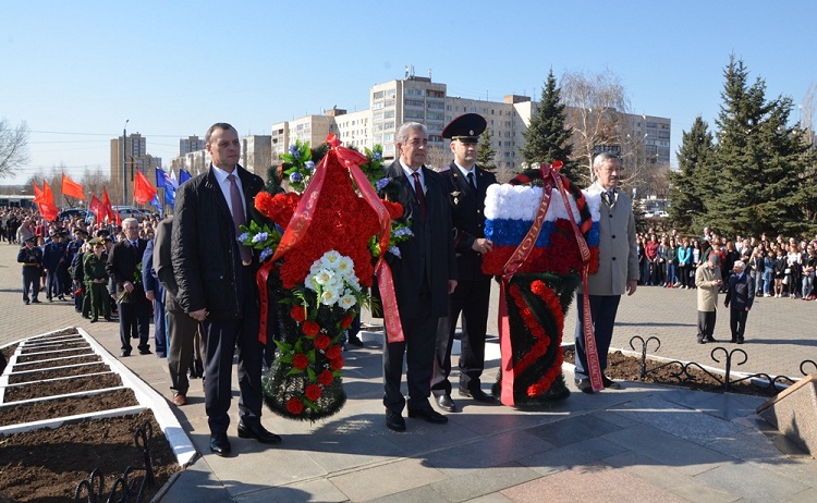 Праздничный день в Оренбурге начался с возложения цветов в памятных местах, связанных с именем первого космонавта. Старт торжественным мероприятиям был дан в сквере имени Ю.А. Гагарина, где находится памятник покорителя космоса. Пришедших почтить память знаменитого земляка оренбуржцев приветствовали врио губернатора Оренбургской области Денис Паслер, глава города Оренбурга Дмитрий Кулагин и однокурсник Юрия Гагарина по авиационному училищу подполковник запаса Анатолий Быков.