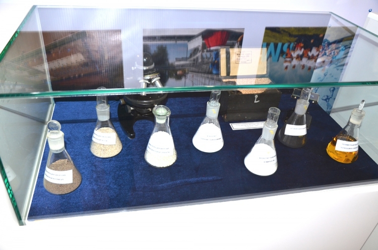 Из современных экспонатов в зале представлены спецодежда, инструменты и оборудование, материалы, образцы запорной арматуры. Отдельный стенд занимает инновационная разработка сотрудников предприятия – уникальное удобрение «Супер Флора».
