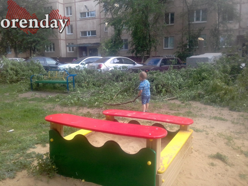 Кучу ветвей оттащили на детскую площадку.