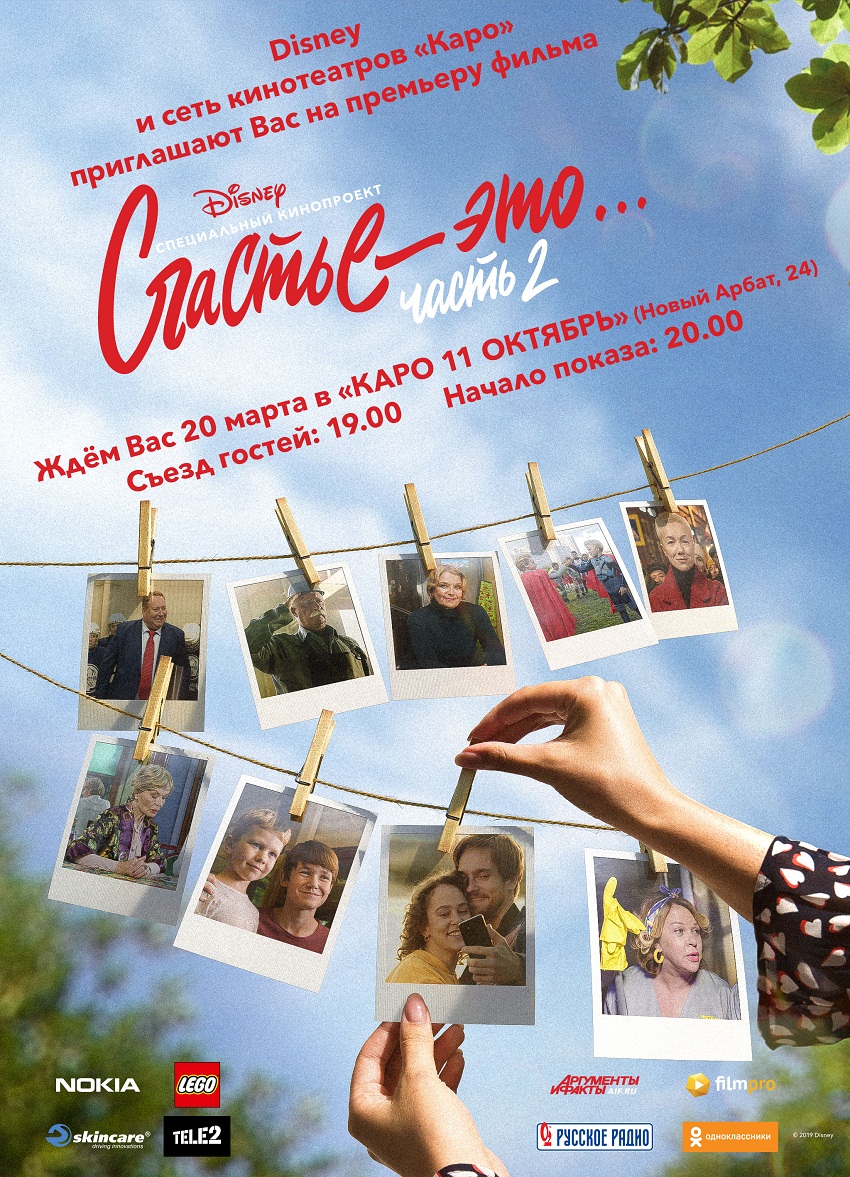 Проект Disney «Счастье – это…» стартовал во второй раз в июне 2017 года и включал пять конкурсов. В профессиональных состязаниях могли принять участие начинающие кинематографисты, а во всенародных – все поклонники кино. В ходе нескольких этапов эксперты отбирали лучших сценаристов, режиссеров и часть актерского состава для будущего фильма. Tele2 учредила собственную номинацию «Кино по другим правилам».