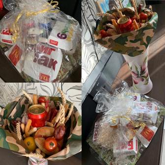 Судя по фото в соцсетях, в тренде у оренбурженок в этом году была военная форма, в которую они наряжались, чтобы поздравить своих защитников. На столах же сооружались женщины из продуктовой нарезки. Самыми же популярными оказались так называемые пивные букеты и кулинарные щедевры опять же в форме военной техники и пышногрудых представительниц "прекрасного пола". Подрастающее поколение радовало своих любимых пап открытками, созданными своими руками.