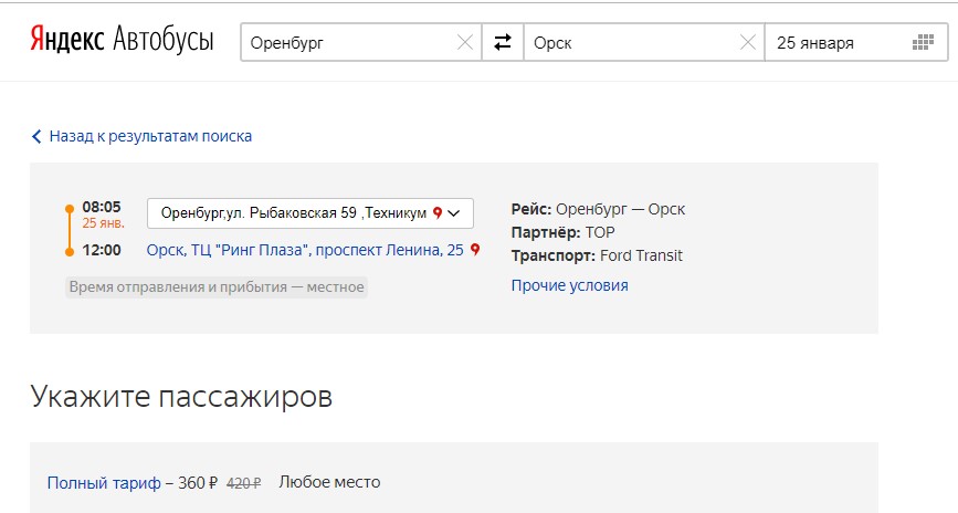 Напомним, сервис «Яндекс.Автобусы», который с прошлого года работает в Оренбургской области, предоставляют услугу заказных пассажирских перевозок по междугородним маршрутам. Партнер проекта, компания «ТОР» использует для перевозки новые 17-ти местные автобусы FORD, оборудованные всем необходимым – мягкими сиденьями, ремнями безопасности, тахографами с контролем скорости и времени, проведенным водителем за рулем.