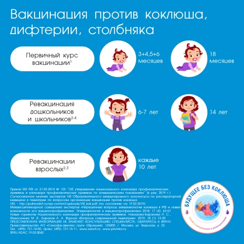 Родители и врачи должны помнить о том, что вакцинацию следует проводить только после медицинского осмотра, чтобы верно определить оптимальные сроки для привики4. Соблюдение рекомендаций по ревакцинации обезопасит жизнь вашего ребенка и ваших близких.