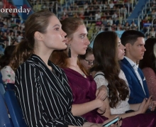 Зал был переполнен выпускниками. Все - при полном пораде.