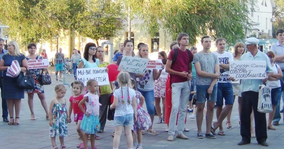 Плакаты собравшихся гласили: «Детские сады - не место для интриг и расследований», «Мы платим налоги - где результат?», «Сэкономите на садиках - разоритесь на тюрьмах», «Пусть администрацию тоже кормит «Подросток», «Детские сады не место для мониторинга!», «Утром строительство сада и школы - вечером разрешение на строительство многоэтажки!».